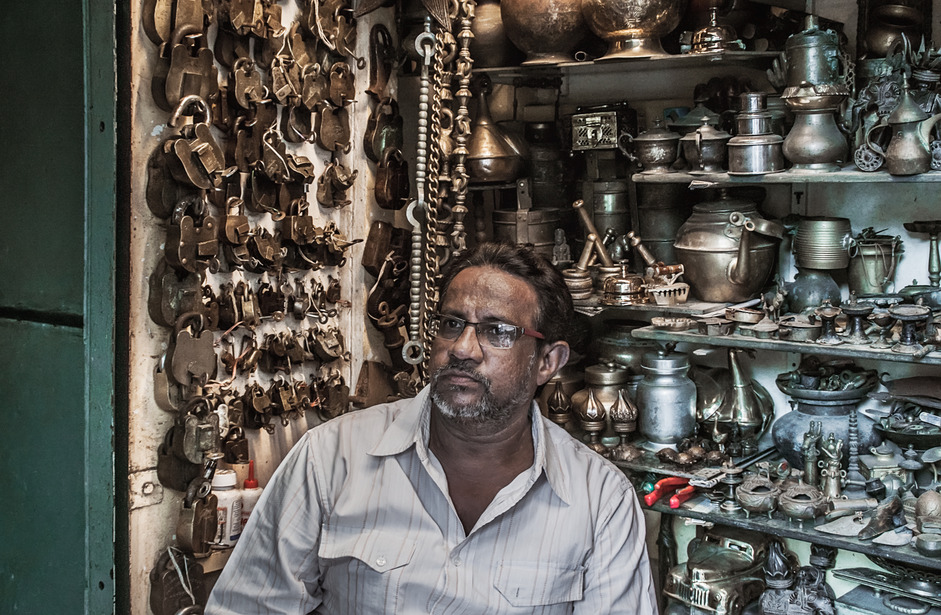 Meet Ishaque, owner of the Curios Center on Mutton Street. Born near Bycullah (South Mumbai), Ishaque put in four unglamorous years working as an assistant at an antique shop in Colaba before taking every rupee he owned and opening up a store of his own. At first, he used to travel all over Northern India searching for brass goods, but he’s since made a name for himself and now the brass comes to him.